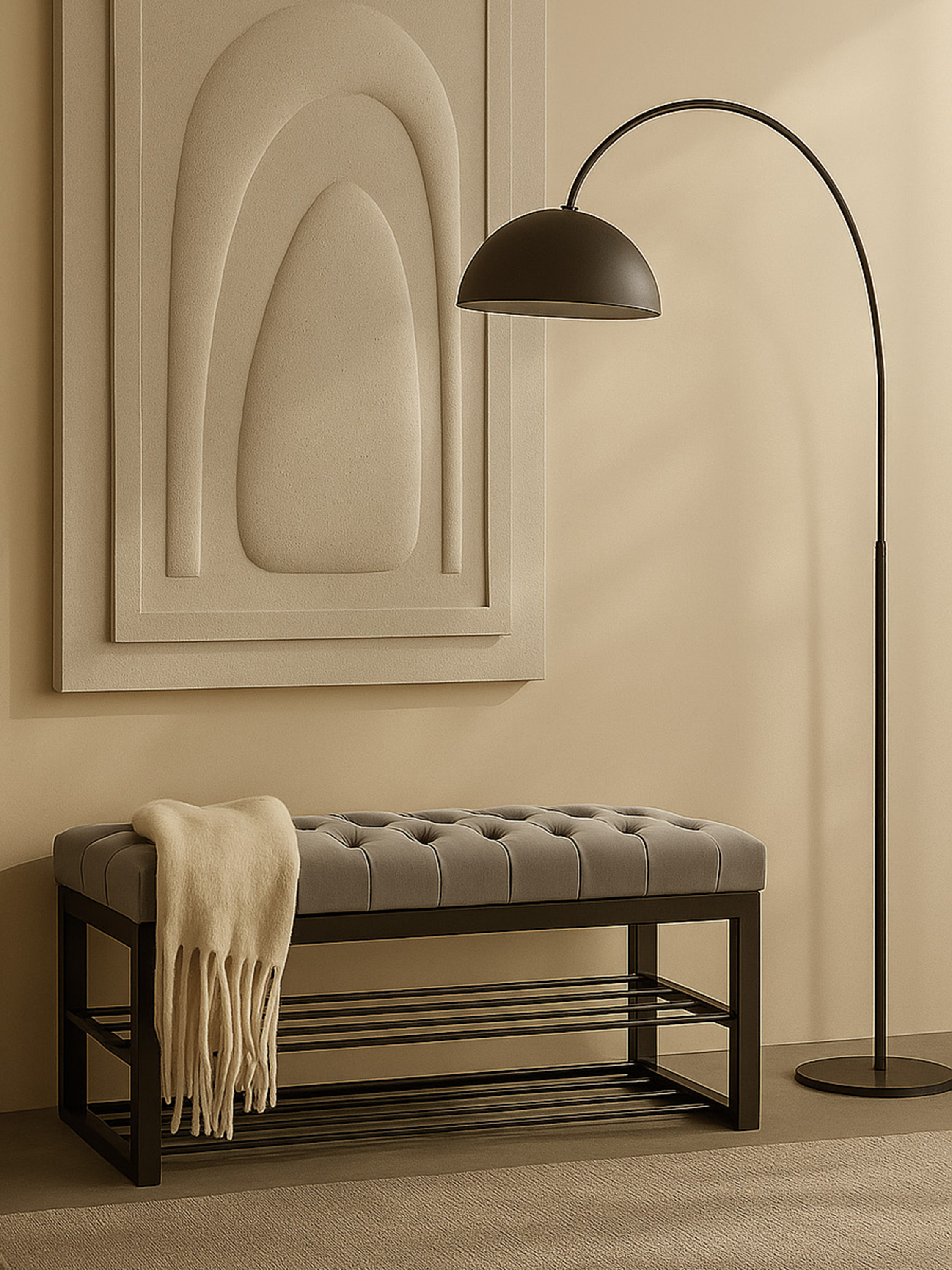 Panca industriale trapuntata per il corridoio SHELF BLANCA – LOFT
