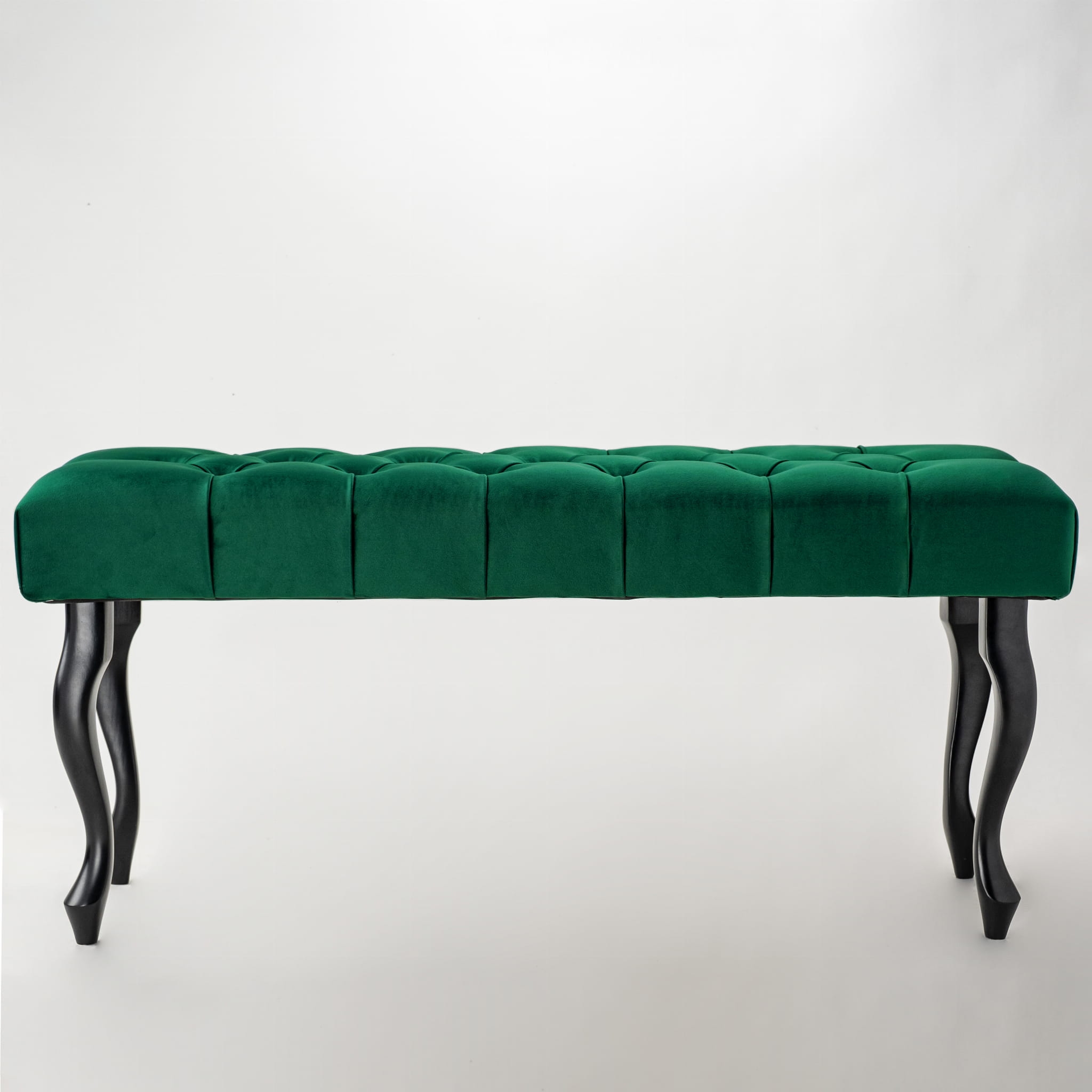 La panca da corridoio Chesterfield Verde Bottiglia è una panca fatta a mano, di alta qualità, con una spessa seduta trapuntata. Sostenuto da gambe in legno di faggio selezionato. Levigato accuratamente, verniciato a spruzzo in modo che non sia visibile la più piccola macchia di umidità. I tessuti utilizzati per i rivestimenti sono di alta qualità, resistenti all'abrasione e a molti altri fattori. Una panca nel corridoio ti permette d'indossare comodamente le scarpe e di fare il primo riposo dopo una lunga passeggiata. Disegna la panca dei tuoi sogni!