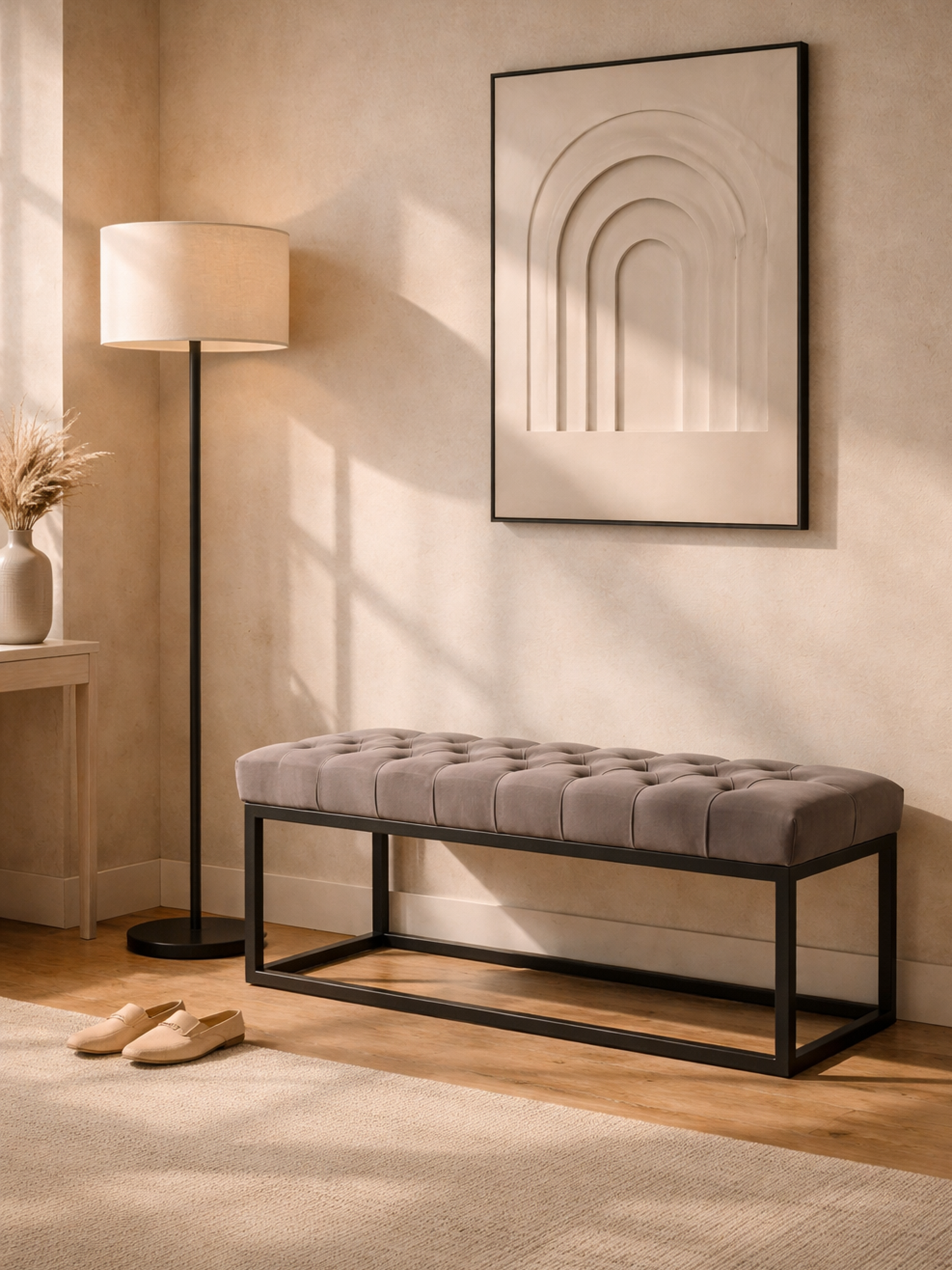 Un mix di stile moderno e classico in un unico mobile? Con noi è possibile! Il modello di panca LOFT crea una moderna struttura industriale composta da profili metallici e una classica seduta trapuntata in molte tonalità tra cui scegliere.