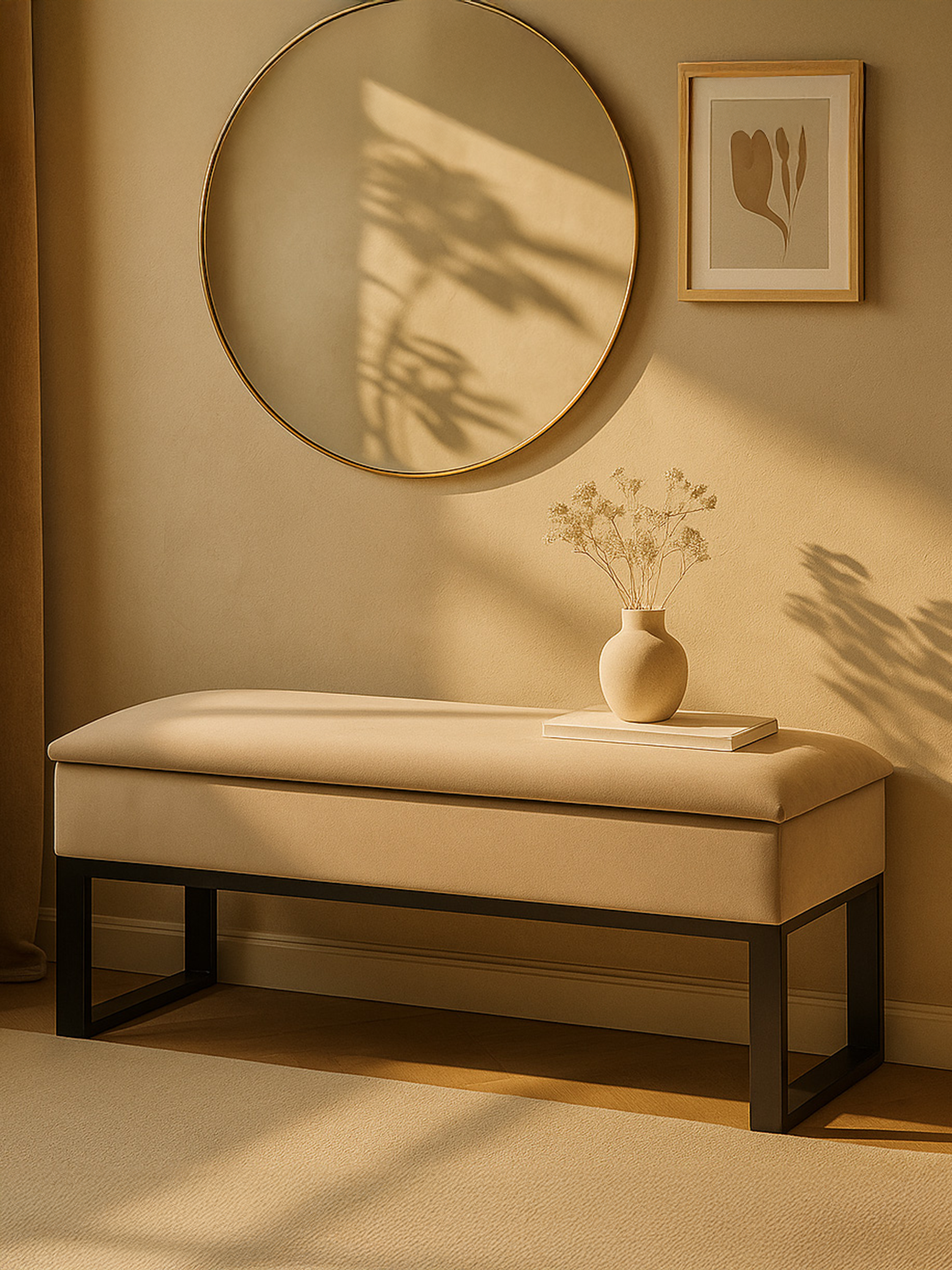 Scopri un'armonia magica con questa panca che presenta uno spazio di archiviazione integrato. Liberati degli oggetti disordinati e goditi una perfetta organizzazione in un solo mobile. Questa panca imbottita non è solo una soluzione pratica, ma anche un'aggiunta originale che conferisce uno stile unico al tuo interno. Nello spazio di archiviazione puoi facilmente riporre scarpe, prodotti per la cura personale o i tuoi libri preferiti. Grazie ai meccanismi di sollevamento discreti e affidabili, aprire e chiudere la cassa diventa un vero piacere.