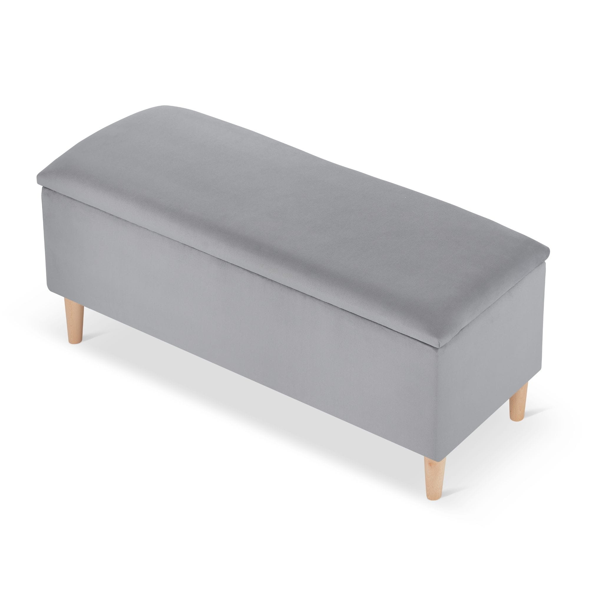 Il tessuto grigio certificato Oeko-Tex garantisce sicurezza, mentre le gambe realizzate in legno di faggio di classe A offrono resistenza e solidità. Questa è la soluzione ideale per coloro che cercano un mobile funzionale con un elevato standard di lavorazione e un design estetico.