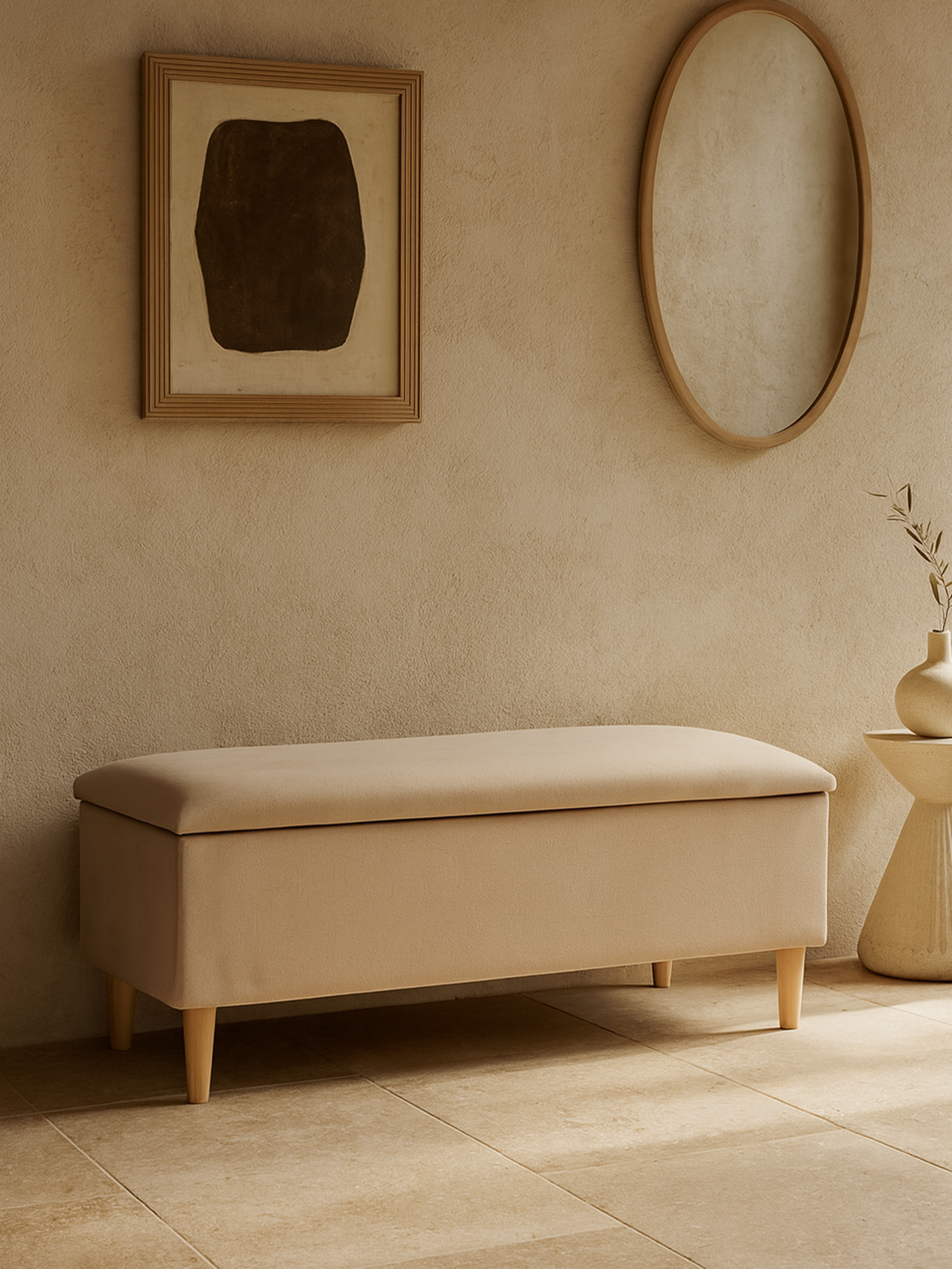 Scegli il colore del tessuto, le dimensioni della panca e la gamba su cui poggerà.