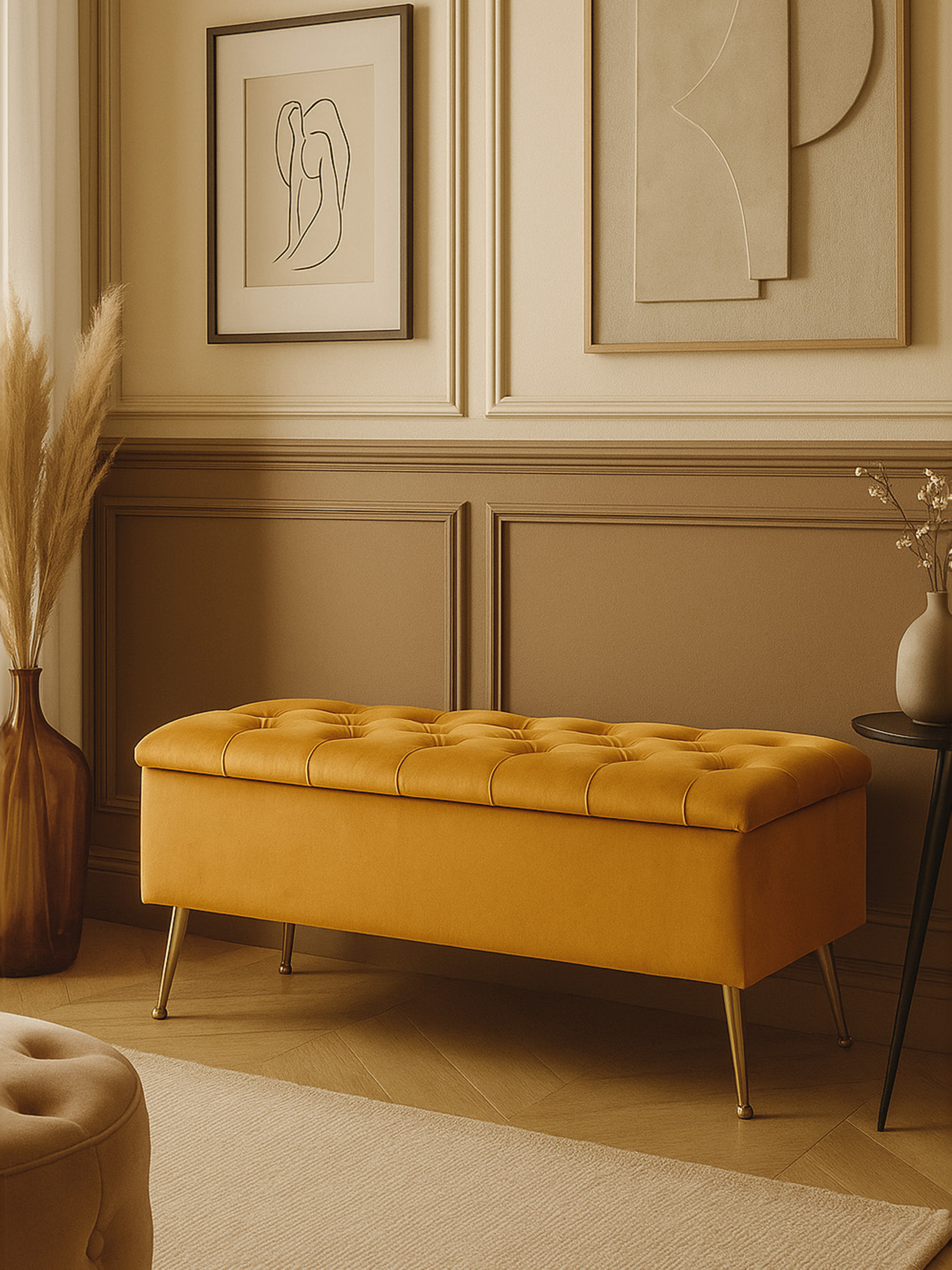 Cassapanca trapuntata fatta a mano con sedile PAPAYA